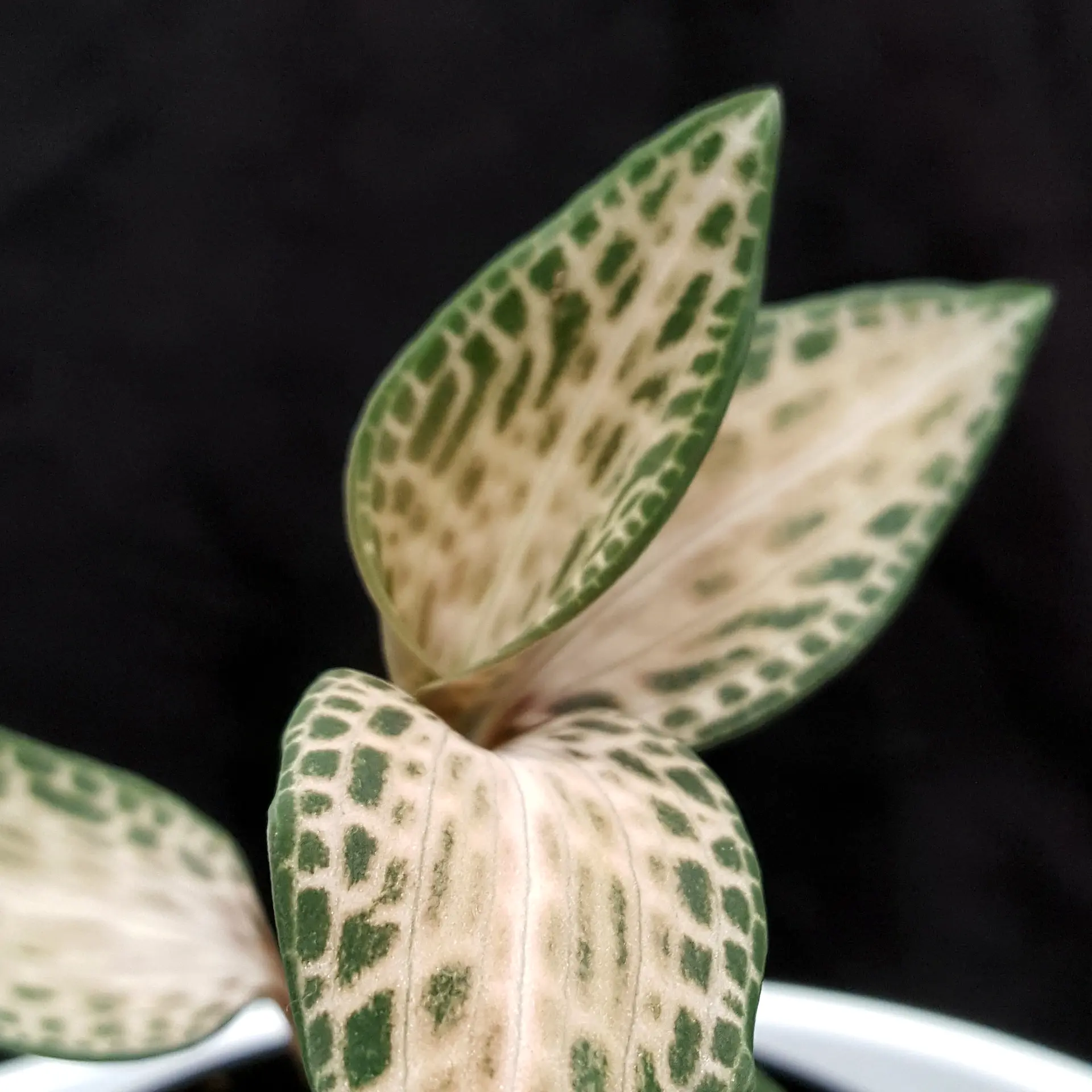 has a wide distribution area in Southeast Asia, so this jewel orchid is correspondingly adaptable. However, it should be kept in a temperate to cool environment - excessively high temperatures do not suit it in the long term. It also likes a loose, moist substrate; waterlogging does not suit it and will lead to the plant's demise. Please avoid direct sunlight, otherwise the few green leaves present will fade. The pictures shown are examples, the plant you purchase is similar to the pictures.